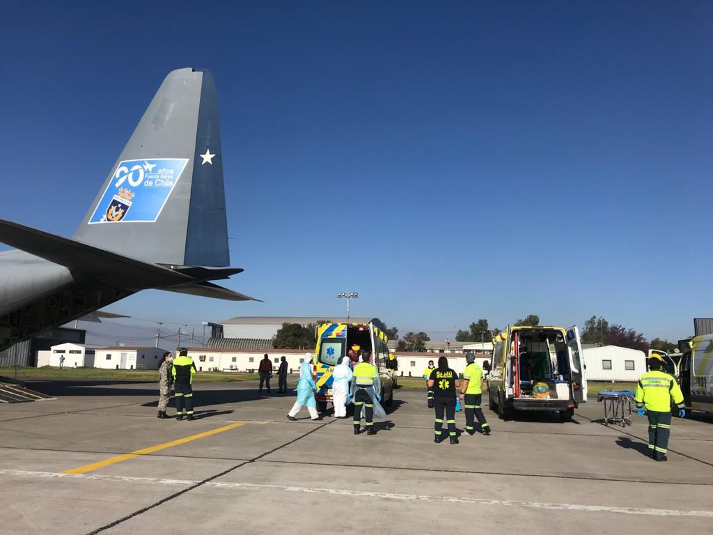 Durante la tarde de este sábado despegaron desde la base aérea de Pudahuel, en Santiago, cuatro pacientes críticos de Covid-19 a bordo de un avión Hércules C-130 con destino a la ciudad de Osorno y el Hospital Base San José.
