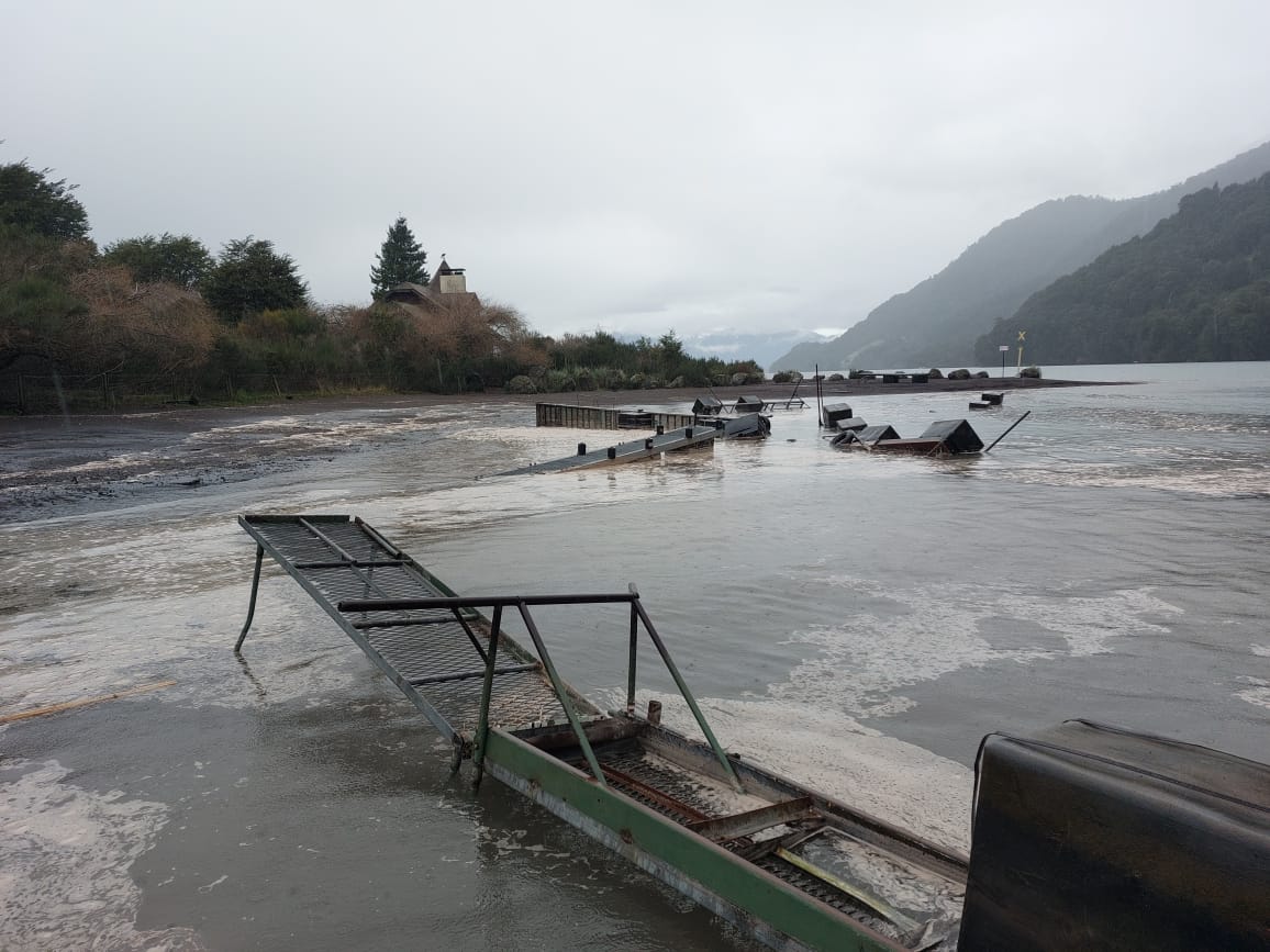 Según informó el municipio de Puerto Varas, el deslizamiento generó «daños en estructuras y embarcaciones de Petrohué».