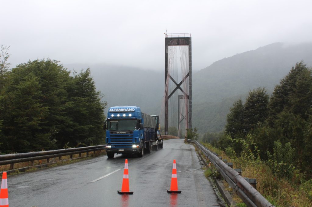 El puente, ubicado en el kilómetro 246 de la Ruta 7, a 45 kilómetros de Chaitén, sufrió el corte de uno de sus tirantes en la conexión con la torre por el lado norte, en agosto del año pasado, tras el paso de un camión a exceso de velocidad por su estructura.
