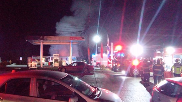 En el lugar, dos microbus ardían violentamente y amenazaban con propagarse a la estación de servicio de combustibles existente en el lugar.
