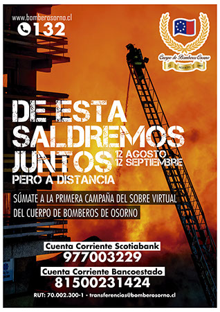 Cuenta Corriente Banco Estado: 81500231424 o a la Cuenta Corriente Banco Scotiabank: 977003229, ya sea en depósito presencial en las oficinas de estos bancos o Caja Vecina o también vía electrónica, para lo cual se debe colocar el email: transferencias@bomberosorno.cl y el RUT: 70.002.300-1.