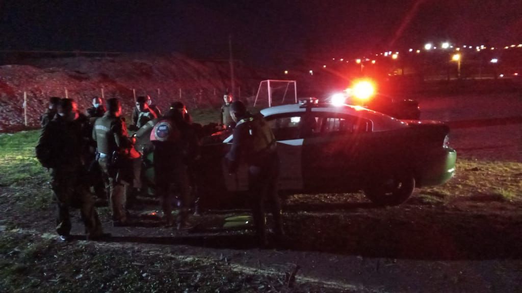 Acto seguido, en un arriesgado acto, y rápido operativo, los efectivos policiales, formaron una especie de cadena de brazos para lograr rescatar al hombre, pudiendo sacarlo en pocos minutos a un sitio seguro hacia una cancha de fútbol existente en el sector.