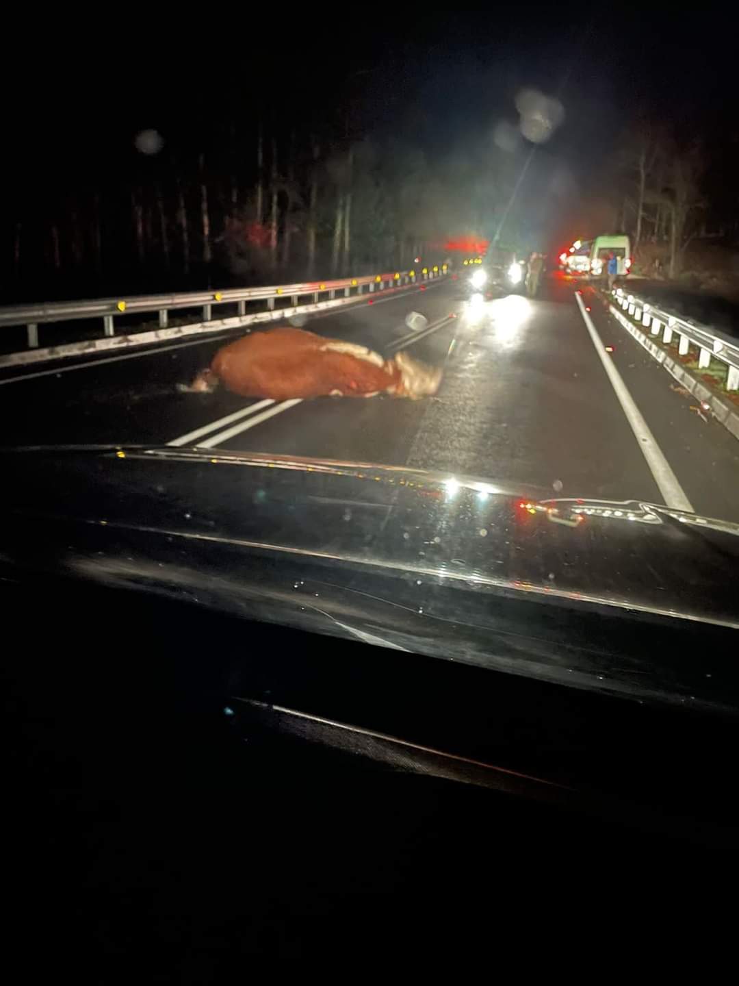 Un vacuno muerto y daños en vehículo de Carabineros, fue el saldo de un accidente de tránsito ocurrido pasada las 22 horas de este miércoles 8 de junio en la ruta U-400, que une las comunas de Osorno y San Juan de la Costa.