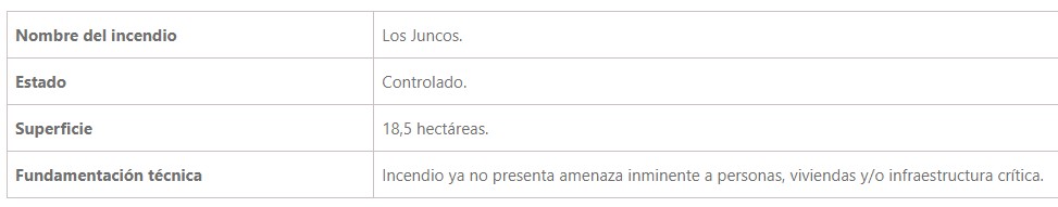 De acuerdo con la información proporcionada por la Corporación Nacional Forestal (CONAF), en relación con incendio forestal en la comuna de San Pablo, se informa lo siguiente: