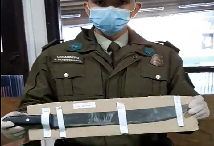 Carabineros de la Segunda Comisaría de Castro detuvo a un sujeto, quien amenazó con atacar a otras personas con un machete de 50 centímetros de largo.