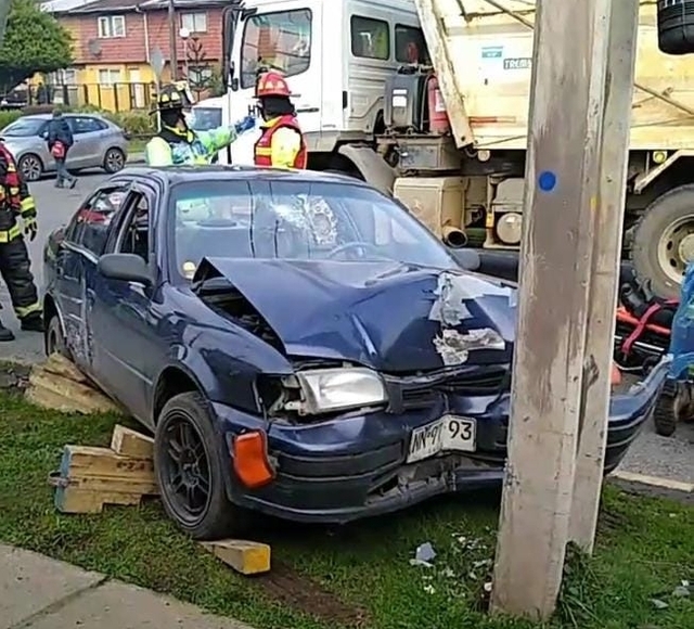 Producto de lo anterior, la conductora del automóvil perdió el control y se estrelló contra un poste del tendido eléctrico, quedando ella con lesiones.