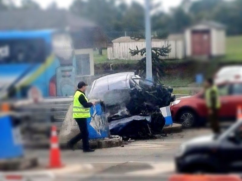 Por circunstancias que se investigan, el vehículo impactó contra la zona de la barrera de contención central, protección instalada para resguardar a las casetas de cobro de peaje.