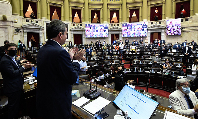 La sesión parlamentaria, que se extenderá hasta el viernes, fue instalada con la presencia de 105 diputados, más otros 45 que se conectaron de forma remota, indicó el presidente de la Cámara, Sergio Massa.