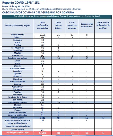 Un nuevo balance de Coronavirus para la región de Los Lagos.