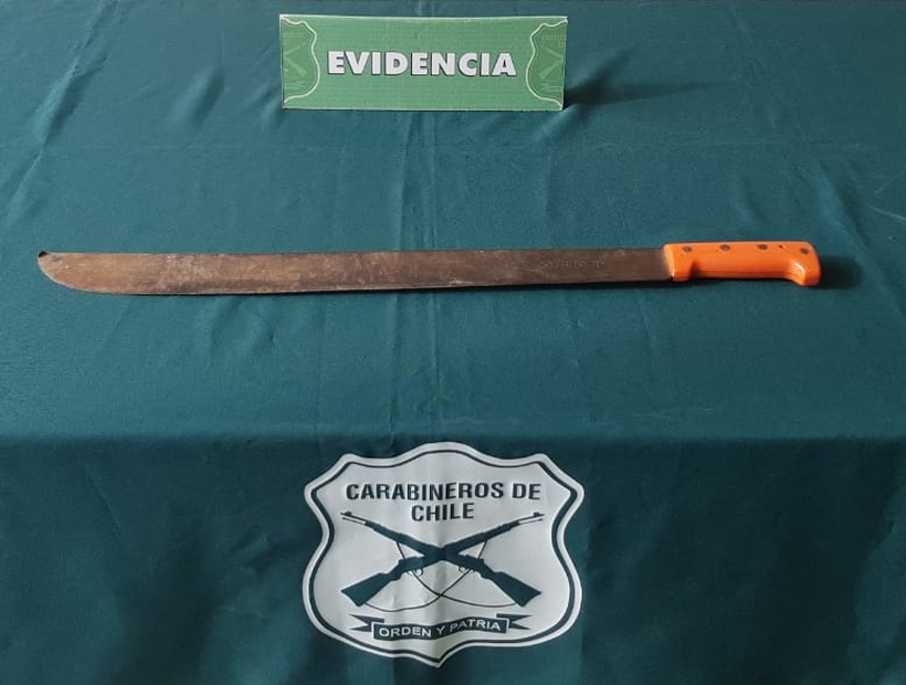 El imputado fue capturado en avenida Real con San Felipe, quien al ver que se aproximaba Carabineros para someterlo a un control de identidad, extrae desde su poleron un machete de grandes proporciones que dejó caer al suelo.