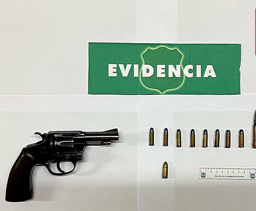 Al realizar el registro de las vestimentas, el sujeto en forma voluntaria expuso la ubicación del arma de fuego, la que estaba en la vivienda de su madre.Se trata de un revolver de calibre 32, no inscrito. Además, fueron incautadas municiones de calibre 7.62, 9 milímetros y 32.