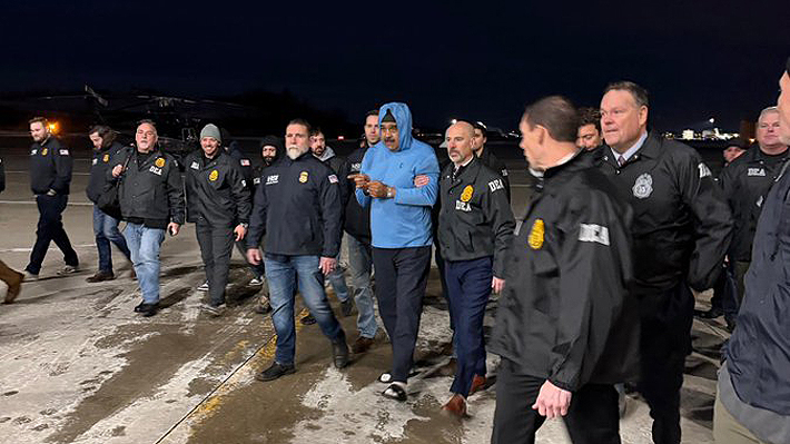Las autoridades estadounidenses dieron a conocer las primeras imágenes de Nicolás Maduro tras aterrizar en Nueva York, luego de ser capturado durante la madrugada en Caracas por las fuerzas armadas del país norteamericano, acusado de delitos de narcoterrorismo.