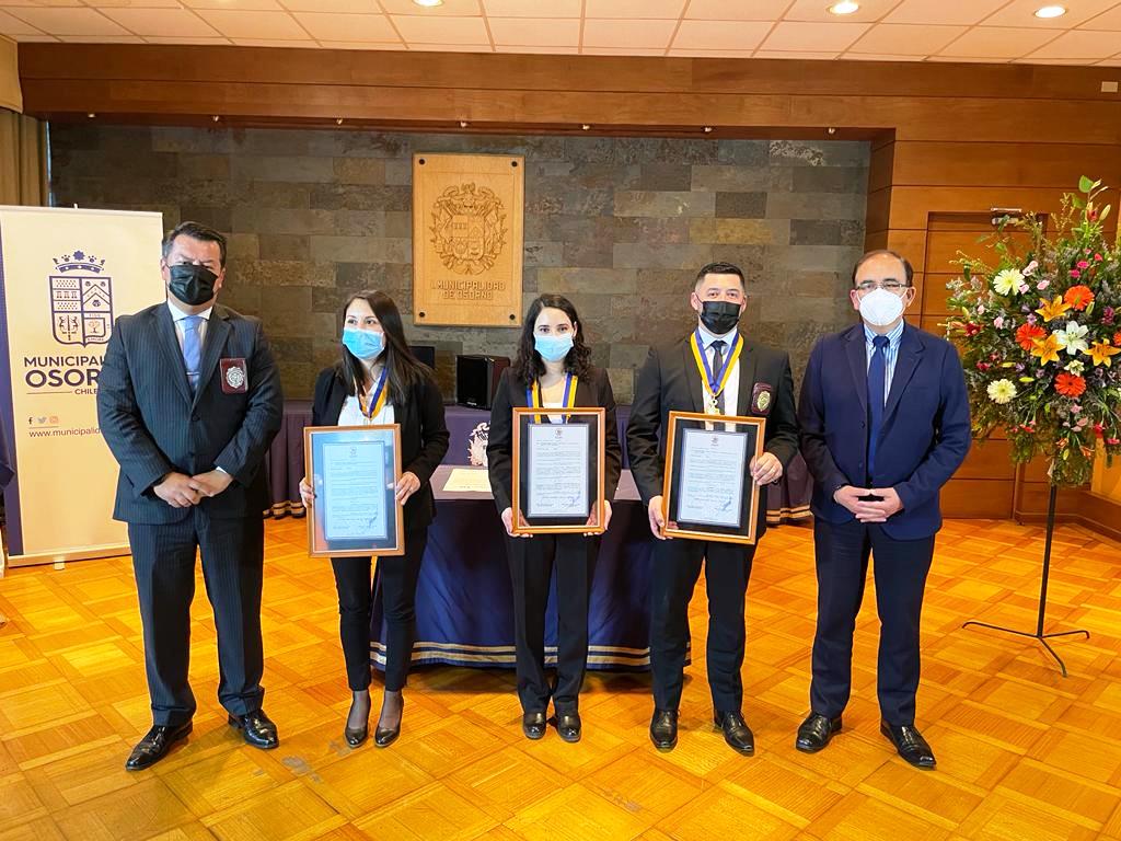En una ceremonia realizada en Sala de Sesiones, el alcalde Emeterio Carrillo hizo entrega la “Medalla Doctoral Municipal” a tres funcionarios de la Policía de Investigaciones de Osorno, que fueron reconocidos por su destacado esfuerzo, apoyo y servicio a la comunidad, tras ser distinguidos como los mejores en las labores operativas y administrativas en esta institución policial.