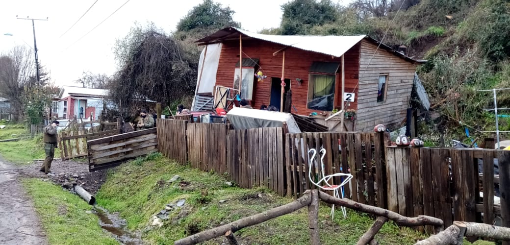 El Comité Operativo de Emergencias (COE) asistió desde muy temprano esta jornada, a una familia damnificada producto del deslizamiento de tierras, en el sector de Caipulli, al final de Ovejería Bajo, y que provocó la destrucción total de su vivienda.