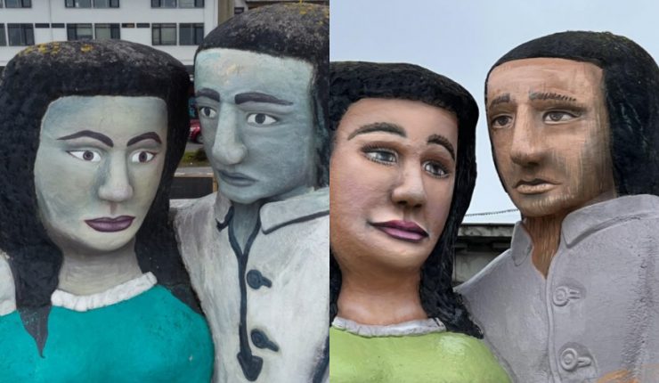 No solamente se renovaron los colores de aquella pareja que adorna la capital de Los Lagos, sino que se rellenó la base donde están sentados. Esto fue lo que causó la molestia de Barría, quien hizo sus descargos.