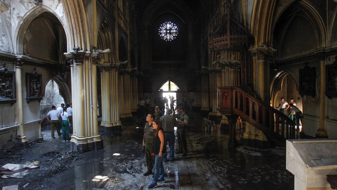 Comenzó el juicio oral contra Gerardo Leal Robles, el único acusado de quemar la Iglesia de Carabineros, hecho ocurrido en la comuna de Santiago el 3 de enero del 2020, en el contexto del estallido social.