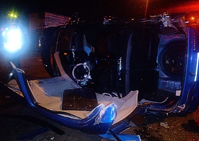 El hecho se produjo a eso de las 21:30 horas de este sábado 22 de mayo, dejando como resultado un vehículo volcado y sus ocupantes atrapados al interior, un hombre y una mujer con unos 5 meses de embarazo, por lo que Bomberos de Rescate extremó los esfuerzos y cuidados, cortando y retirando todo el techo del automóvil.
