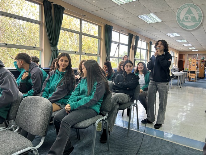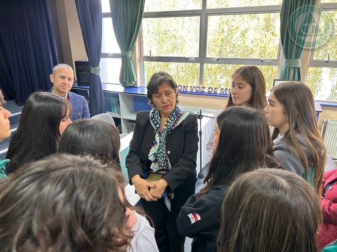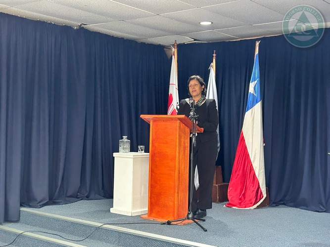 Un conversatorio con estudiantes de enseñanza media del Osorno College realizó esta mañana la Gran Maestra de la Gran Logia Femenina de Chile (GLFCh), María Andrea Villalobos, en un ameno encuentro que tuvo como eje central el rol de la mujer en la sociedad actual, la relevancia del pensamiento crítico y los valores éticos en la formación ciudadana.