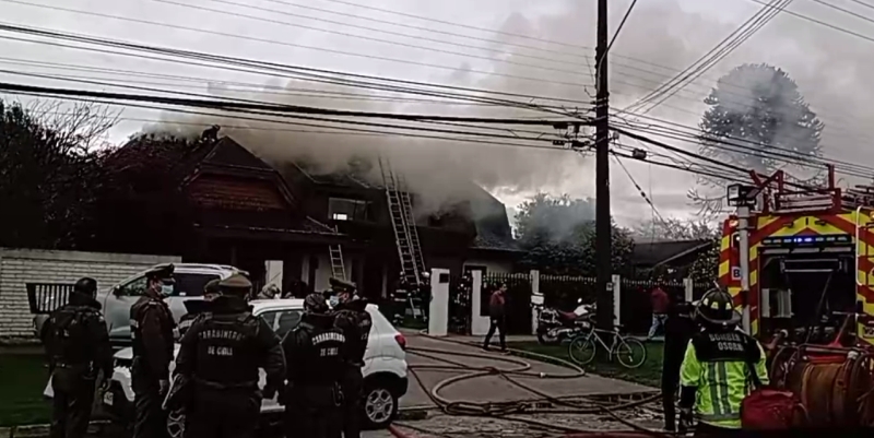 La tarde de este lunes, un incendio se registró en una vivienda de dos pisos en calle Guillermo Bühler, sector oriente de Osorno.