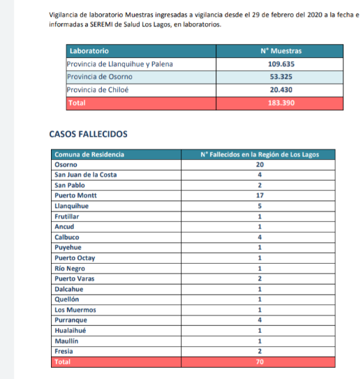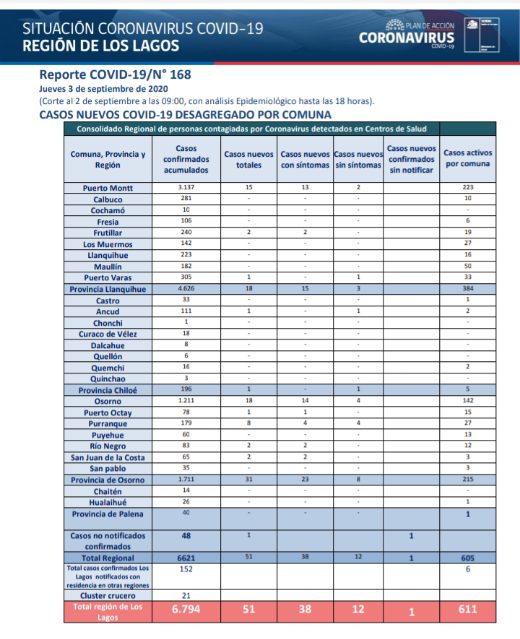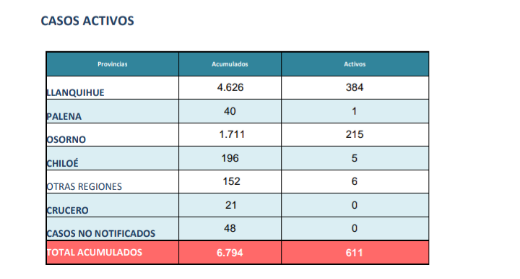 En el balance diario de Coronavirus para la región de Los Lagos, da cuenta de 18 nuevos casos para la comuna de Osorno y 15 para la capital regional Puerto Montt.