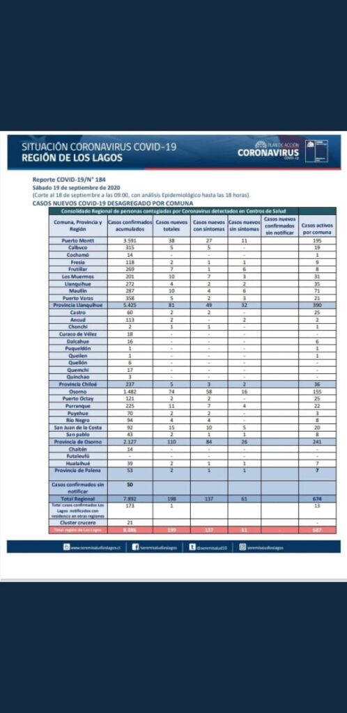 En tanto que la capital regional Puerto Montt, la cual se encuentra en cuarentena, suma 38 casos.