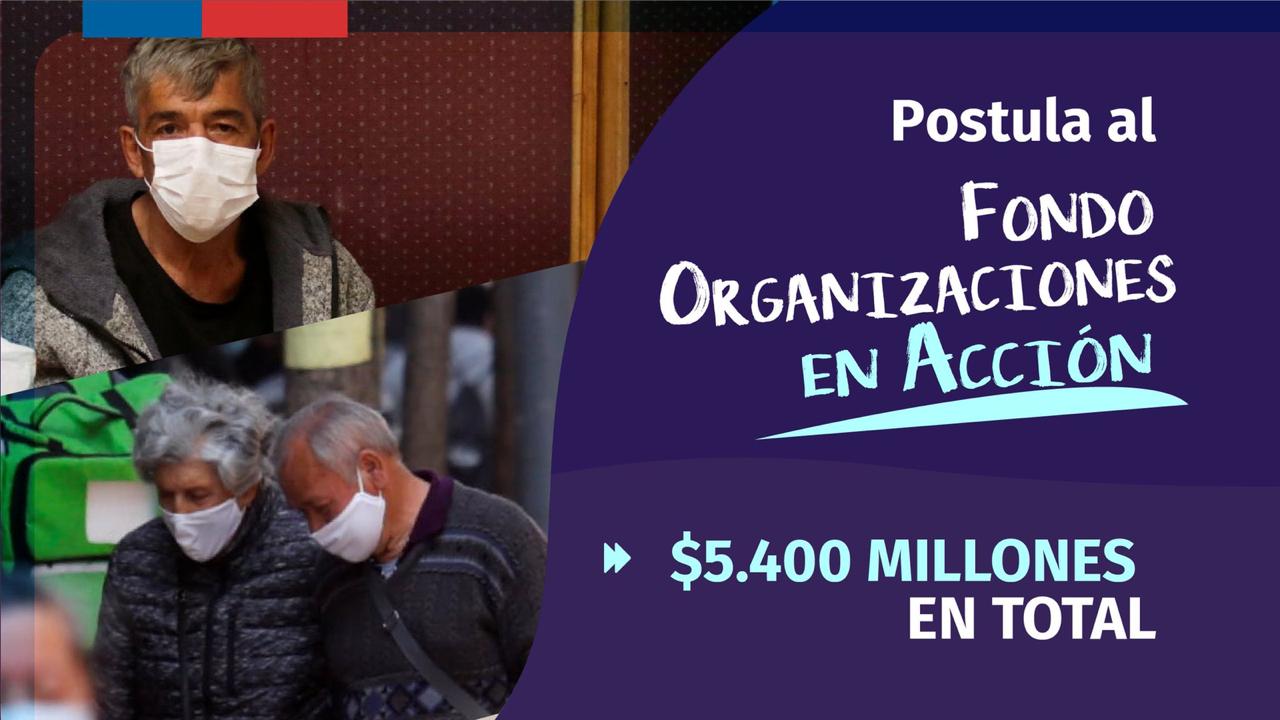 Las postulaciones del fondo Organizaciones en Acción estarán abiertas hasta el 30 de noviembre en www.fosis.gob.cl Los requisitos para postular son: ser organizaciones de base sin fines de lucro, preferentemente funcionales y territoriales según la Ley 19.418, con vigencia a diciembre del año 2019 o ser una organización sin personalidad jurídica patrocinada por alguna de las anteriores.