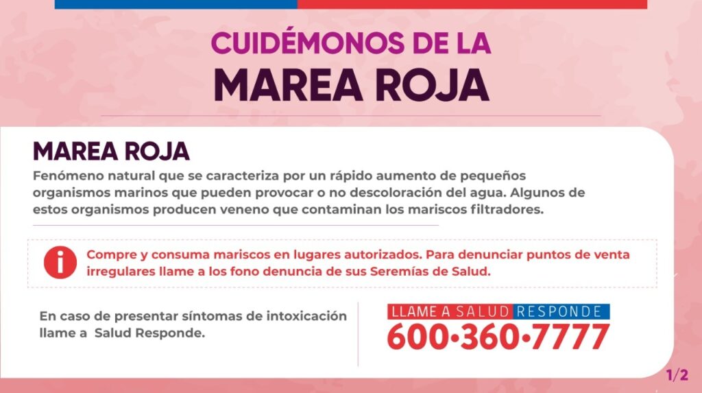 La Seremía de Salud informa que la región de Los Lagos no tiene marea roja, confirmando que los mariscos contaminados consumidos por este grupo de personas provienen de otra zona del país.