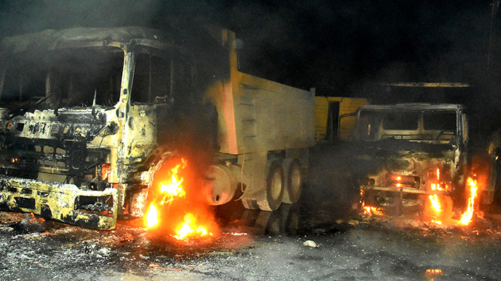 A través de la Fiscalía de Primeras Diligencias se tomó conocimiento del ataque ocurrido durante la madrugada en el kilómetro 12, ruta R-49, en el que se quemaron tres camiones y se sustrajo una camioneta.
