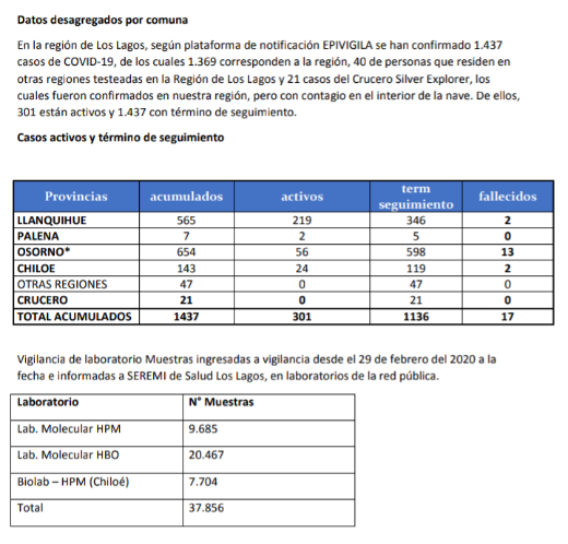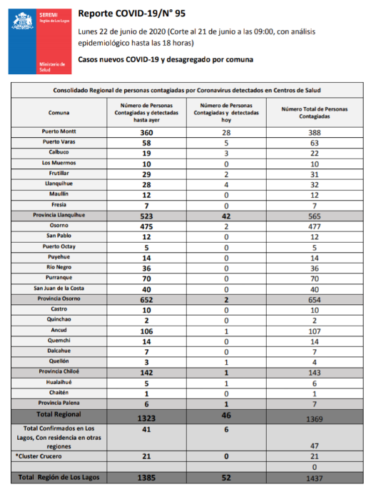 En un nuevo reporte entregado por la Seremi de Salud de la región de Los Lagos, Scarllet Molt, da cuenta de un aumento grave para la ciudad de Puerto Puerto Montt de 28 casos, mientras que en Osorno, suma 2 nuevos casos.