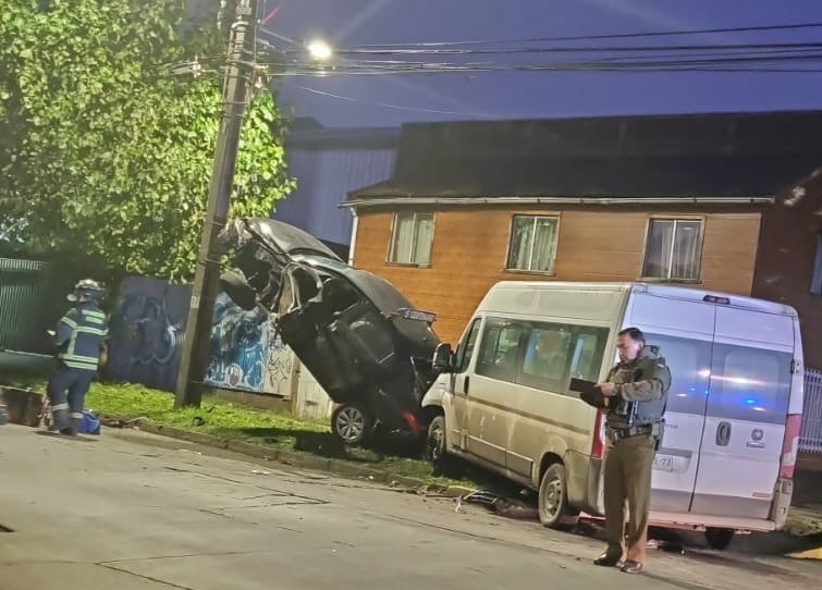Cerca de las 06:35 horas de este sábado, se informó sobre una colisión entre un taxi colectivo y un furgón en la intersección de calle Errázuriz con Amunátegui, dejando como saldo al vehículo menor sobre un poste del tendido eléctrico, además del conductor del mismo con lesiones en sus costillas y, la detención de una mujer.