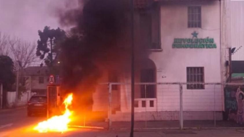 Un grupo de desconocidos prendió fuego en las afueras de la sede de Revolución Democrática en Providencia la noche de este domingo.