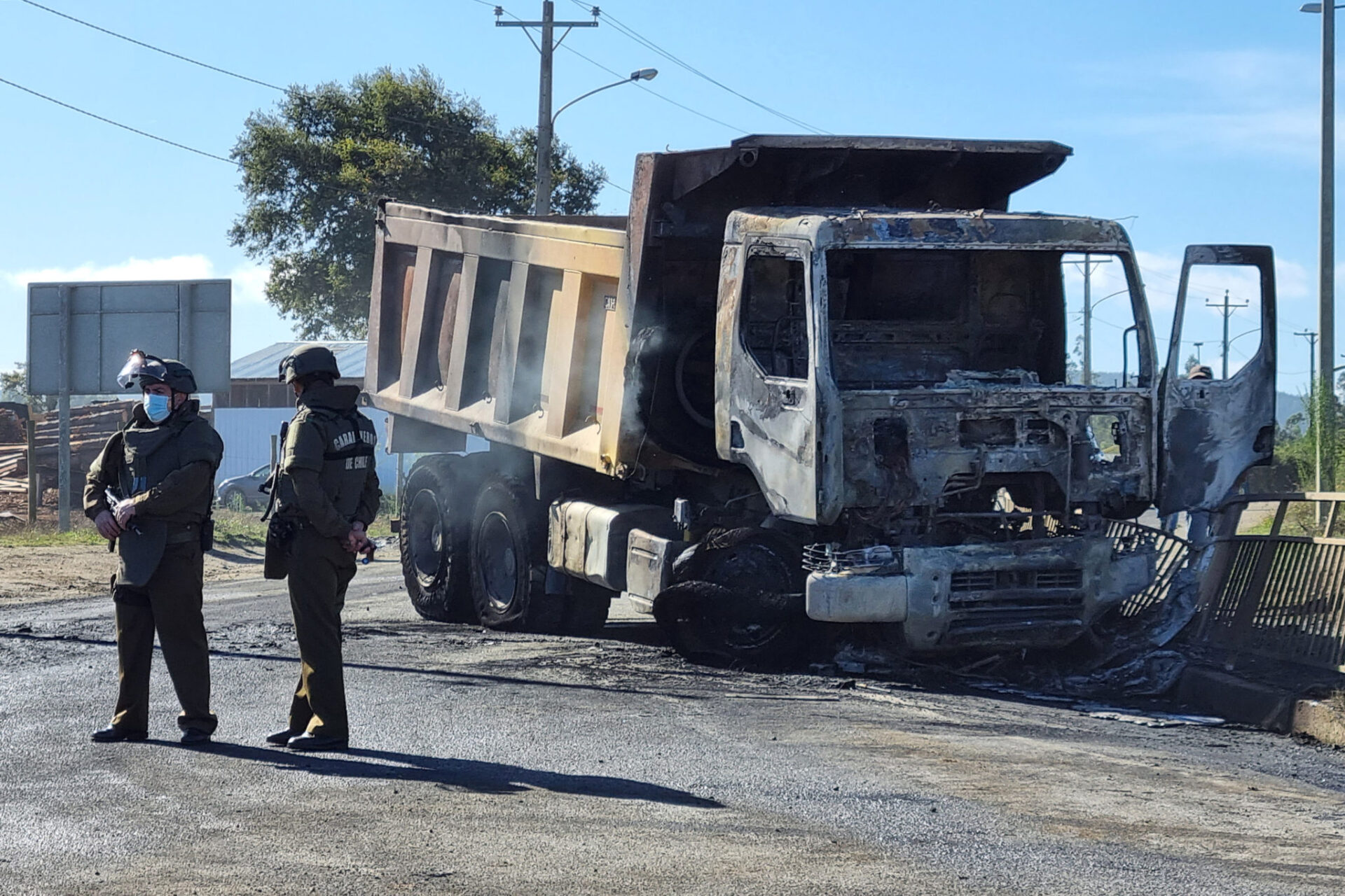 «Las primeras indagatorias indican que alrededor del mediodía, un grupo aproximado de ocho sujetos, encapuchados, portando armas de fuego, ingresan a esta faena forestal en dos vehículos. Acto seguido, proceden a intimidar y amenazar a los conductores de los camiones, efectúan disparos en diferentes direcciones para posteriormente aplicar algún tipo de acelerante sobre los camiones y quemarlos», detalló el prefecto de Malleco, coronel Cristian Mansilla.