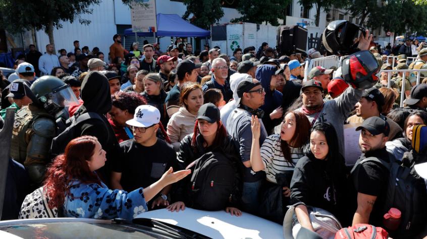 Carabineros llegó hasta las inmediaciones del Estadio Víctor Jara la mañana de este lunes porque cientos de migrantes se concentraron en el ingreso del recinto que estaba funcionando de manera extraordinaria como un punto de atención del Registro Civil para el trámite de enrolamiento.