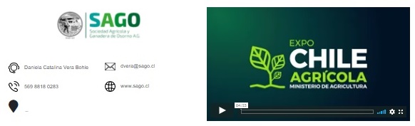 SAGO A.G., participa en esta feria virtual con un Stand en el Pabellón Otras Instituciones, en el cual se puede conocer sus diferentes unidades de negocio: Gremial, Ganadería, Radio SAGO, Eventos y Recinto SAGO, donde existe además la oportunidad de conectarse de manera instantánea vía chat, para poder obtener información más detallada.