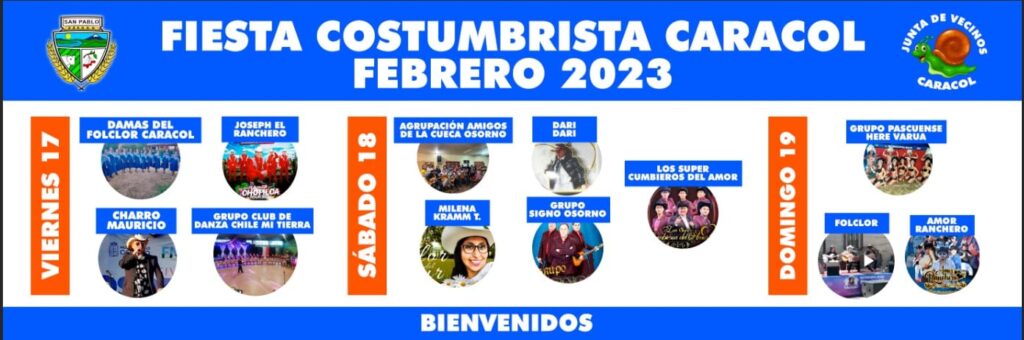 Entre el viernes 17 y el 19 de febrero, el sector Caracol en la comuna de San Pablo tendrá su gran fiesta costumbrista con grandes artistas invitados y una variada oferta gastronómica para vecinos y visitantes.