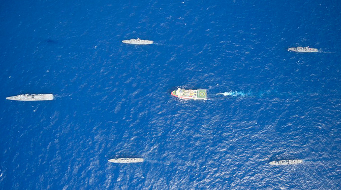 Junto al mensaje se han difundido cuatro fotografías de los buques de guerra en formación.