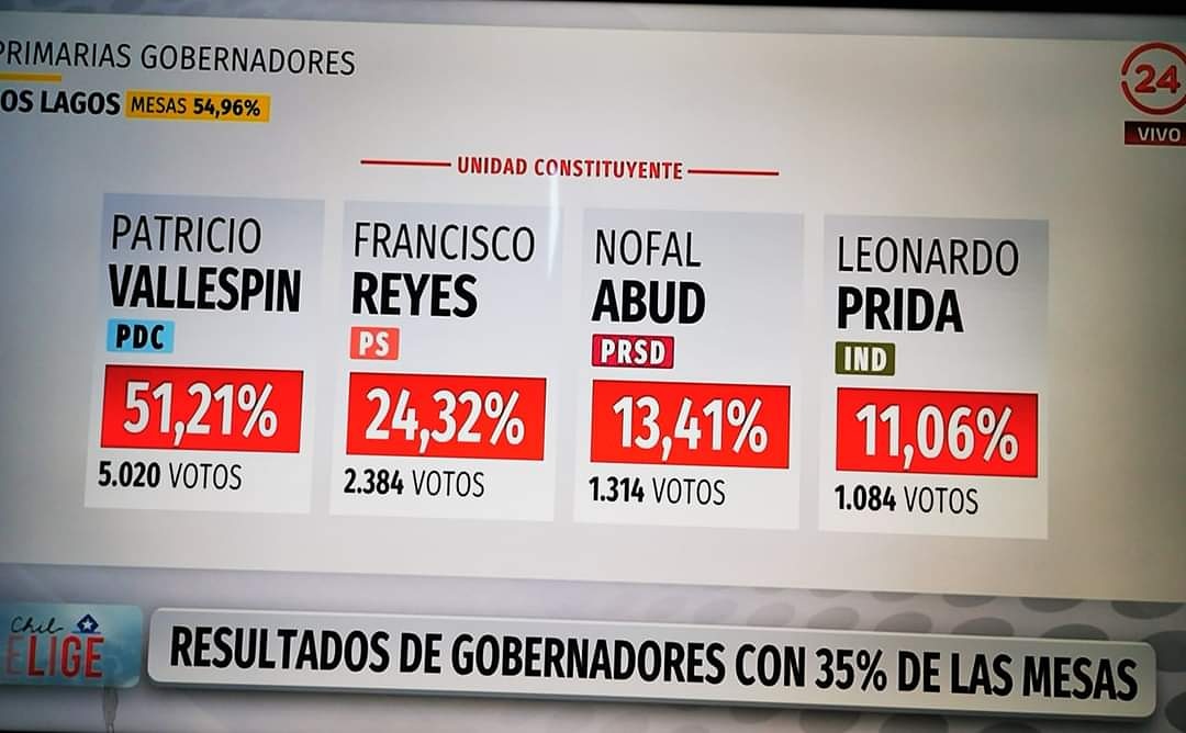 Patricio Vallespin sacó una ventaja considerable con sus contendores, más del 51% salió para competir en las futuras elecciones de Gobernador Regional.
