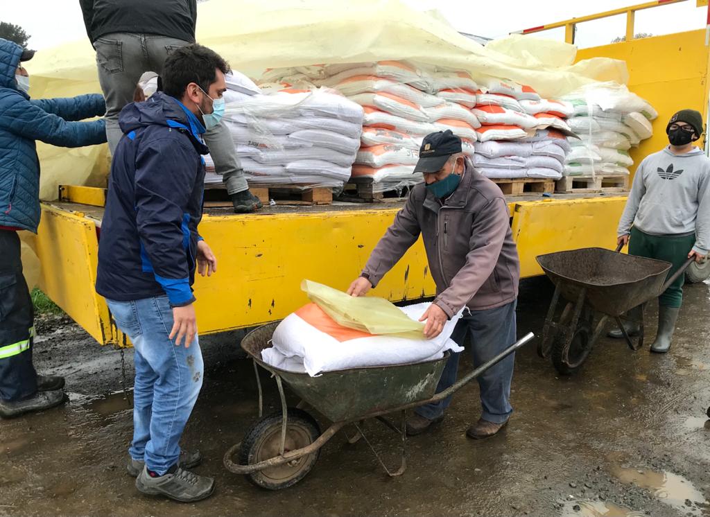 El alcalde Jaime Bertin constató en terreno la entrega de esta ayuda, consistente en sacos de concentrado para vacunos, aves, cerdos y ovejas, señalando al respecto que “esta iniciativa es financiada 100% con recursos municipales, dispuestos para ayudar al desarrollo de estas personas que viven en el campo, especialmente en esta época de pandemia”.