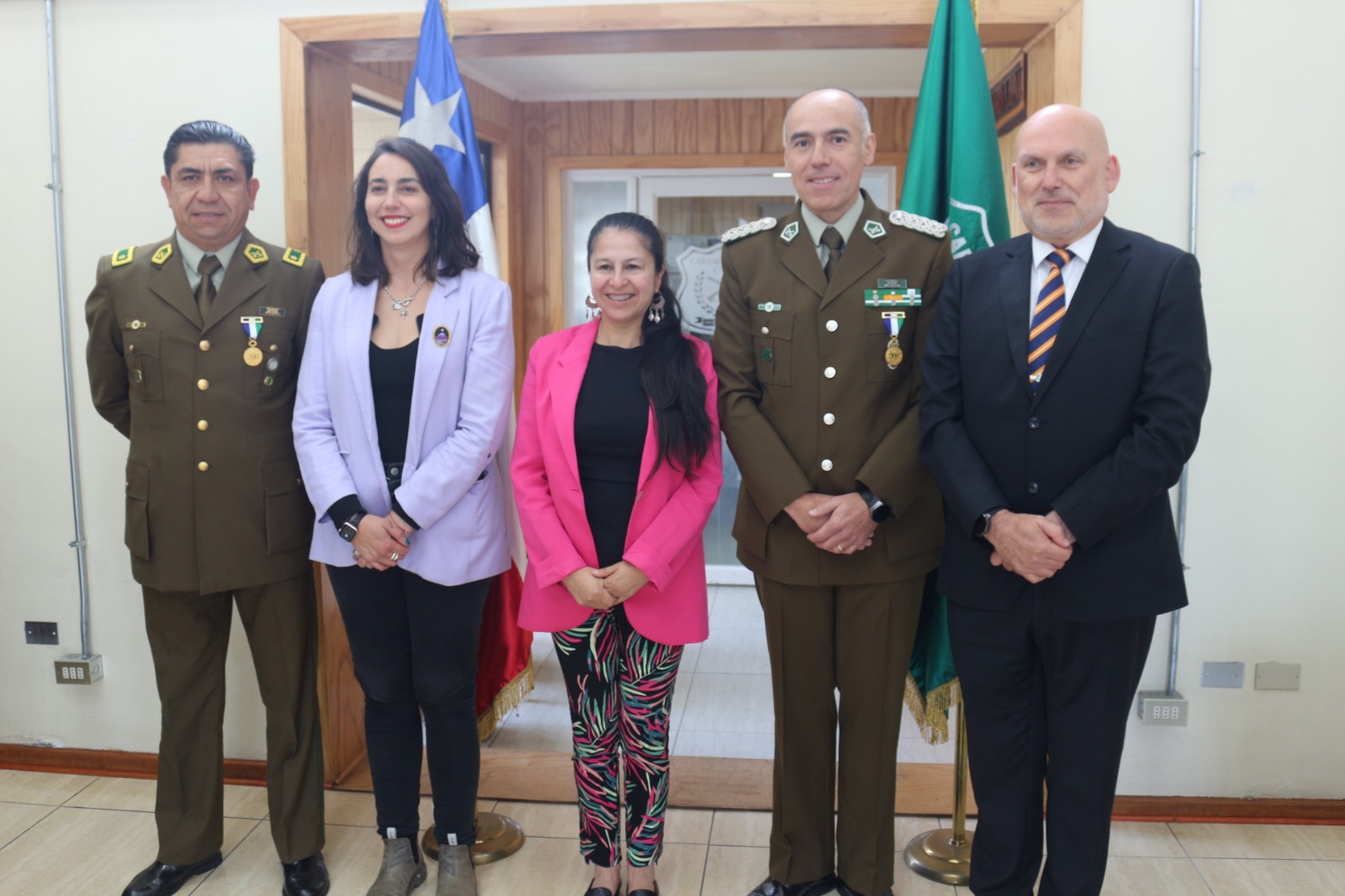 El acto, que contó con la presencia de la Delegada Presidencial (S) de la región de Los Lagos, Claudia Pailalef; el Delegado Presidencial de Chiloé, Marcelo Malagueño; y la Secretaria Regional del Ministerio de Seguridad Pública, Patricia Rada, se celebró en dependencias de la Zona Los Lagos.